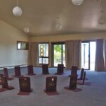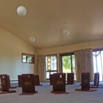 This facility is situated on a knoll overlooking meadows and redwoods, with a broad view of the Monterey Bay. The meeting room is bright and comfortable, with a high ceiling and sliding doors that open out onto a large deck. The facility features guest rooms for up to 16 people. A small kitchen with a tea and fruit bar are standard.