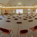 Centered around a large courtyard and garden feature, our largest facility features an expansive view of redwoods, the Santa Cruz mountain range, and the Monterey Bay. The bright, open meeting hall features a high ceiling, expansive windows with black-out curtains, various lighting options, full sound equipment, and an optional stage. Nearby are two breakout rooms, the Maple and Willow Rooms. The facility features guest rooms for up to 74 people. A stocked tea and fruit bar are standard.